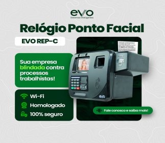 RELÓGIO PONTO ELETRÔNICO EVO REP C - Registro de Ponto através de Reconhecimento Facial e Wiffi integrado
